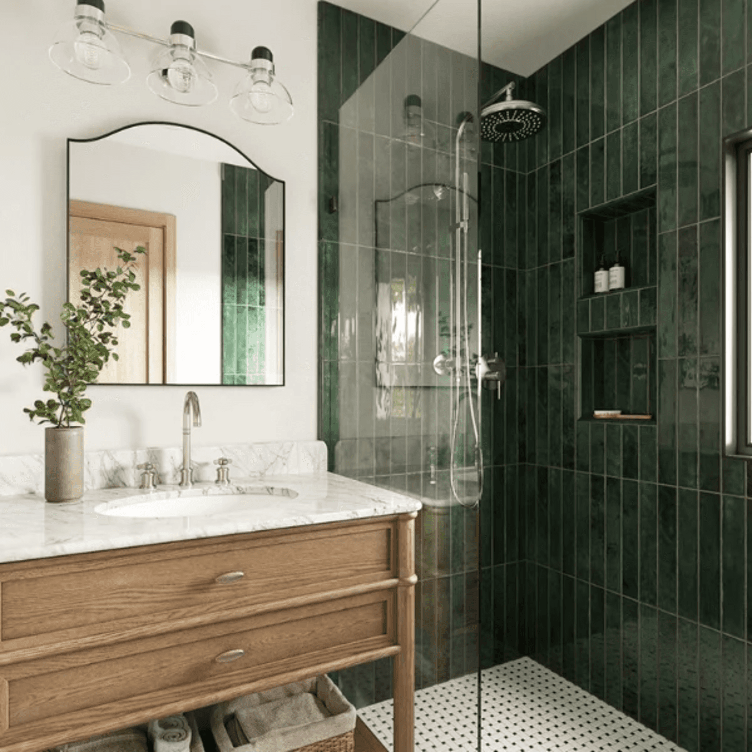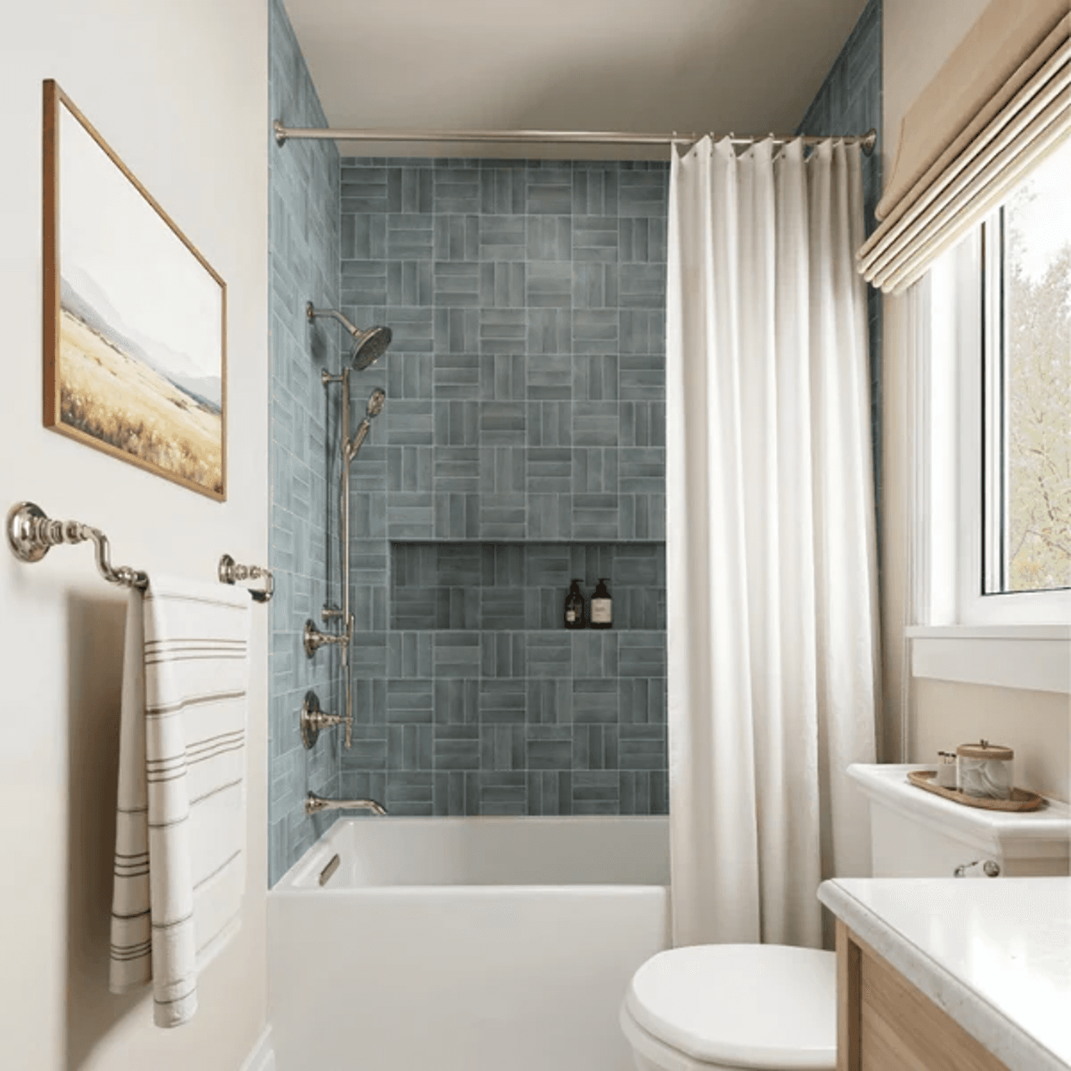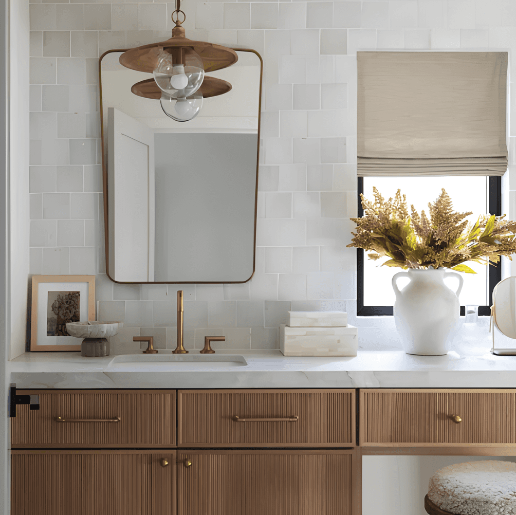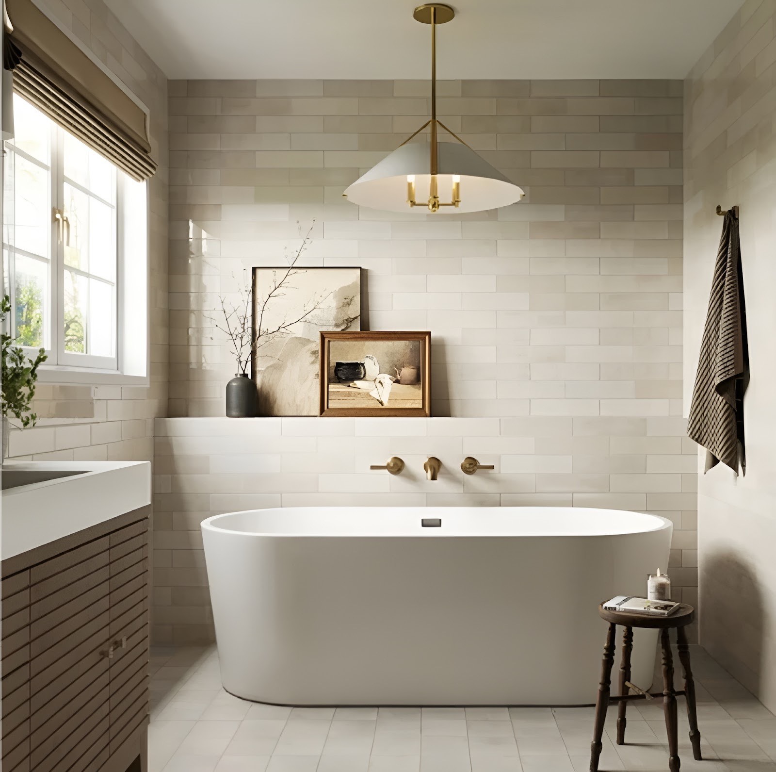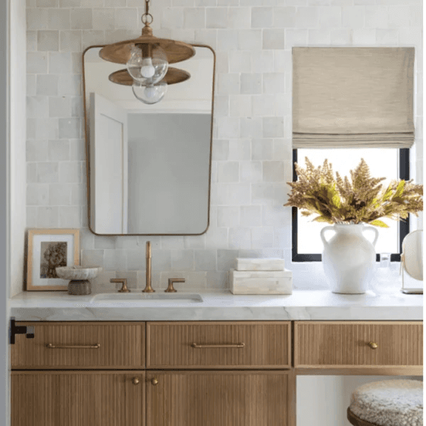 Why I love it: It’s clean and simple, feels fresh, minimal, and with the right tile selection, it still has personality. It’s perfect for a relaxed but refined look. I like choosing a tile with subtle variation (like zellige handmade or glazed ceramic tiles).
