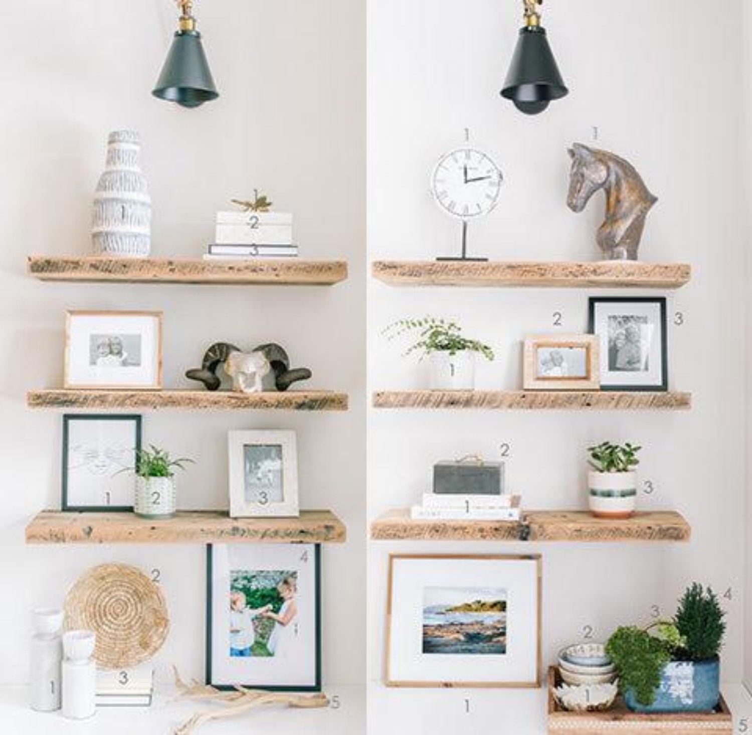 Using the items you've sourced online, create a mood board so that you can visualize what your shelves will look like once they're styled.