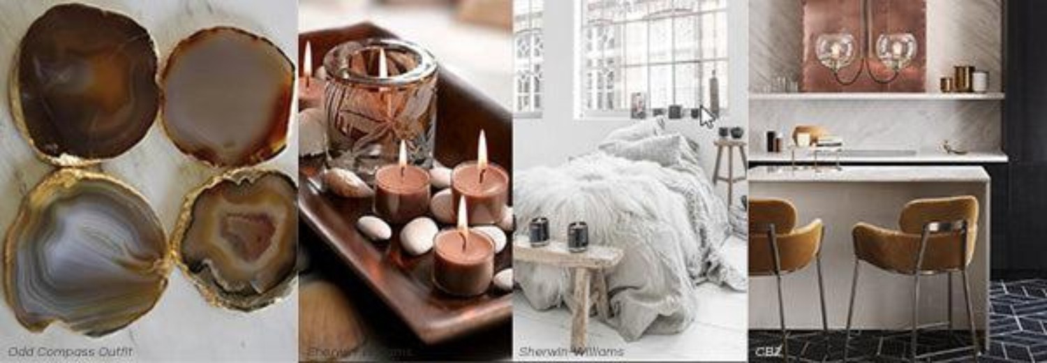 The 2018 interior design trends related to the Sincerity colour palette are inspired by nature and finding beauty in imperfections. Natural materials such as Nordic woods, marble, agate and stone are popular. You'll also see more smooth surfaces in muted tones of bronze, pewter and platinum, as well as a continued trend for brushed brass. However, Hygge has perhaps the most significant impact. Expect to see plenty of candles, snuggly bedding, natural materials and treasured photos as we continue to crave more comfort.