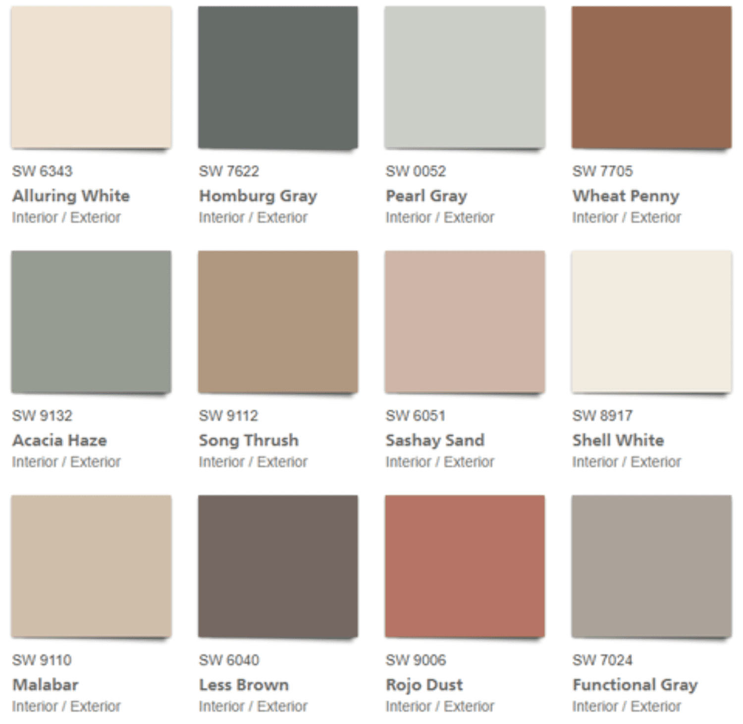 As a result, the Sincerity palette is full of warm tones that create a warm, cozy and comfortable feeling. Even the cooler green and grey colours have warm undertones. Sherwin-Williams describes the Sincerity palette as having hushed tones of sand complex greys and hazy botanicals.