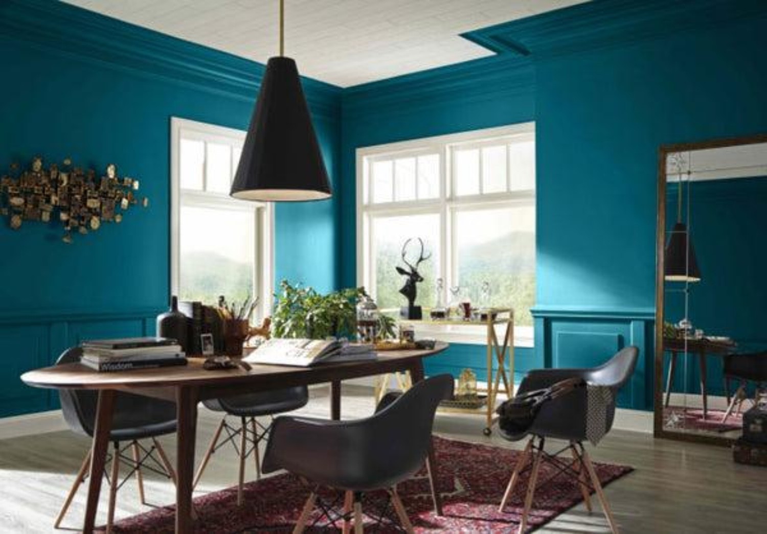 Considering the fact that blue-green denotes positivity, serenity, sophistication and confidence, it’s perfect for an office, meditation room, exercise room or bedroom. Again because of its saturation level, consider your comfort level with colour. I LOVE colour, but when it occupies so much space, it draws attention. Giving attention to anything on a regular basis can become tiring. Evaluate whether or not you can commit to looking at such a strong colour for a long period of time before using it to paint all of your walls. Again, I’d opt to use deep versions of blue-green in your furniture, flooring, lighting and accessories selections or maybe an accent wall.