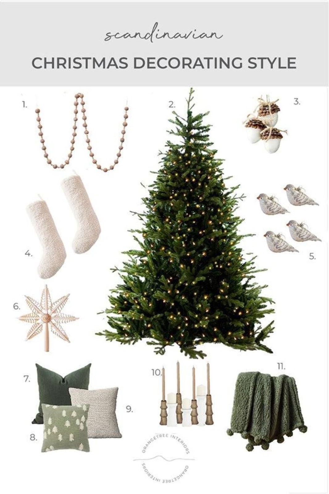 Wooden Accents: Integrate wooden ornaments, tree toppers and other decorative elements made of wood for a warm and organic feel.