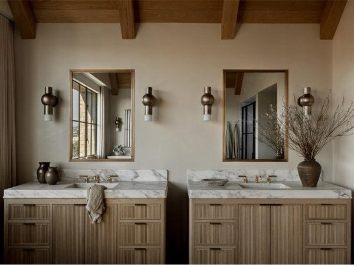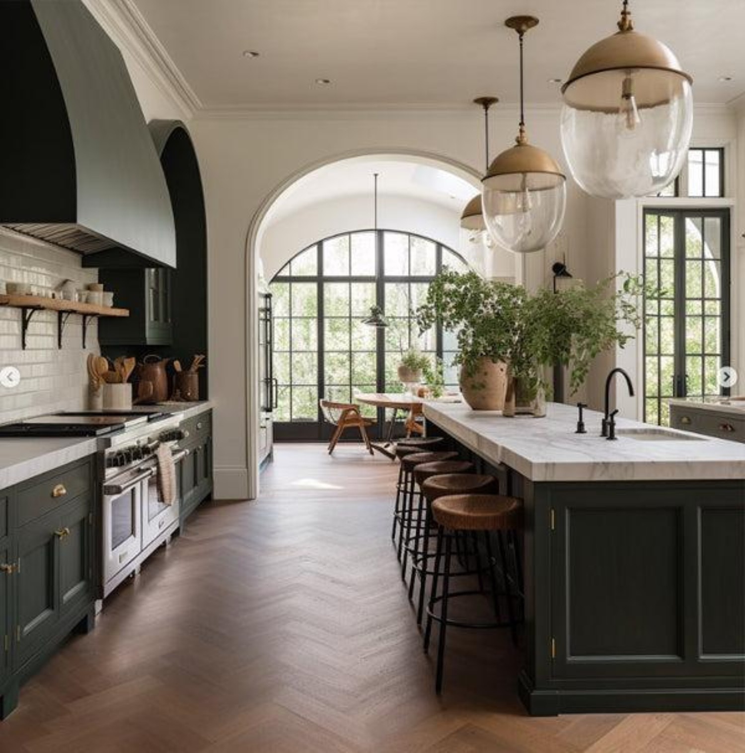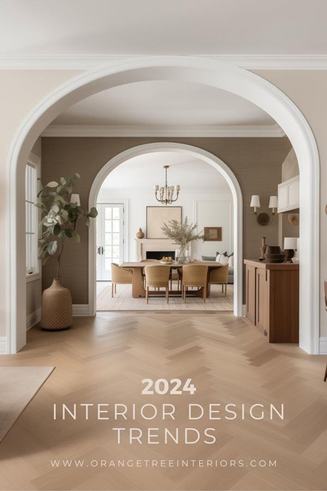 People are tired of cookie-cutter spaces. In 2024 you can expect to see designs that draw inspiration from renaissance times with antique and vintage pieces or finishes and ornate details. Think iron accessories, patina finishes, ornate furniture details or dainty legs, as well as interesting crown molding, trim and arched hallways, windows and doorways.