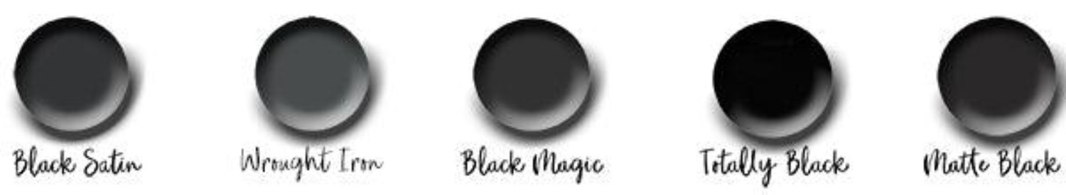 Paint colours: Black Satin, Wrought Iron, Black Magic, Totally Black, Matte Black