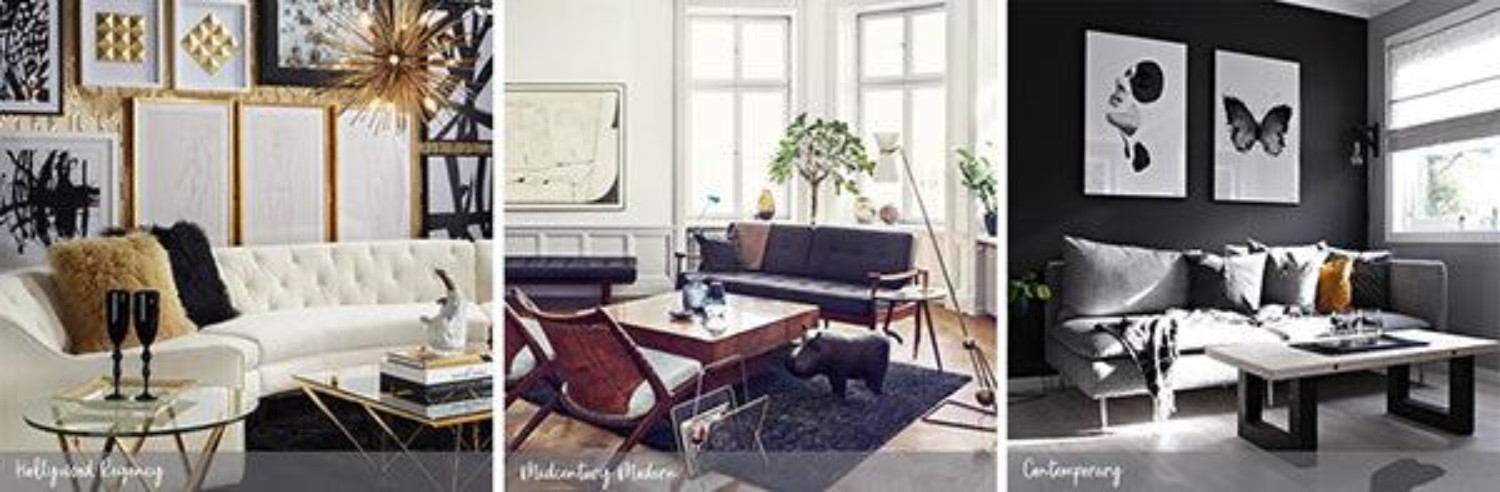 Now that you have all of your living room design ideas and inspirations on hand, you should be able to see a trend toward a specific style. Black lends itself well to modern, contemporary, Hollywood regency, eclectic and industrial designs very well. These are just a few. If you’re not sure how to use black within your desired style, do some research. Doing so will help you to remain true to the style, thus help you to create an authentic design that will have your friends gasping. Here are a few living room design ideas using black in different styles for a quick reference.