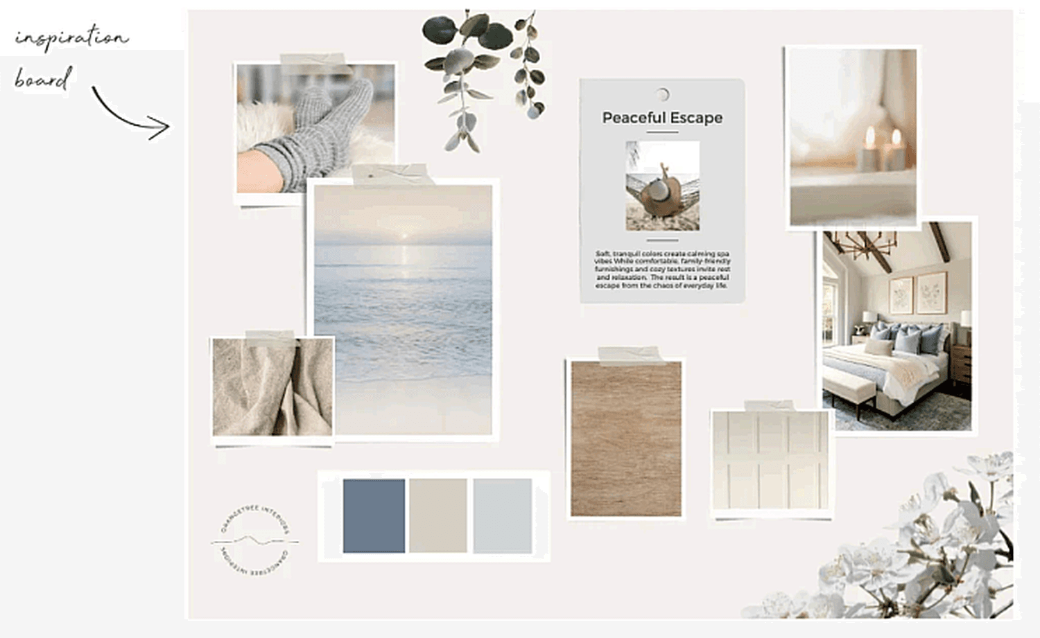 I began with the color palette. Blue is known to evoke calm so I chose soft, muted tones to bring