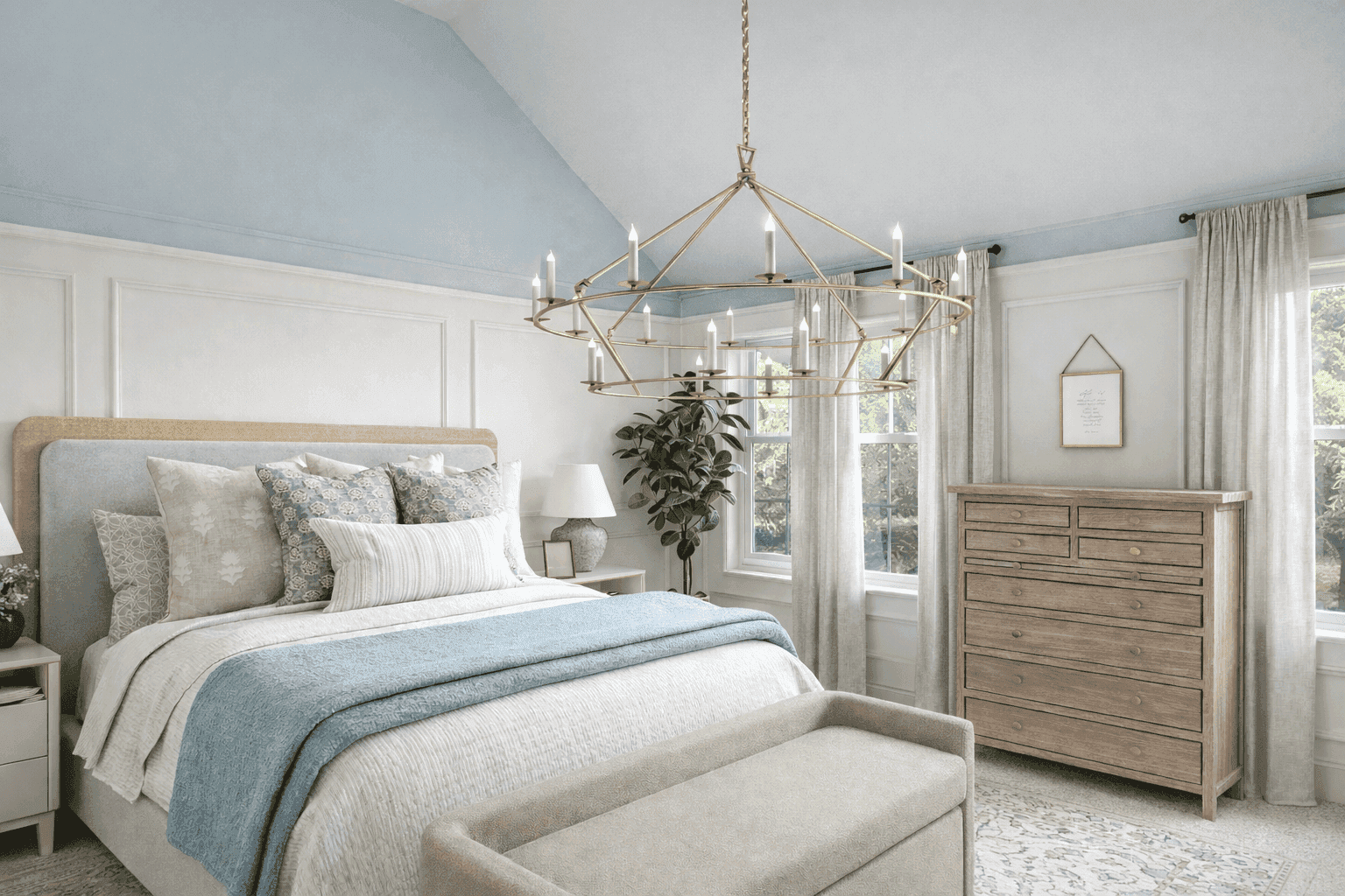 To create an even deeper sense of calm, I kept the walls light and opted to paint the ceiling in a