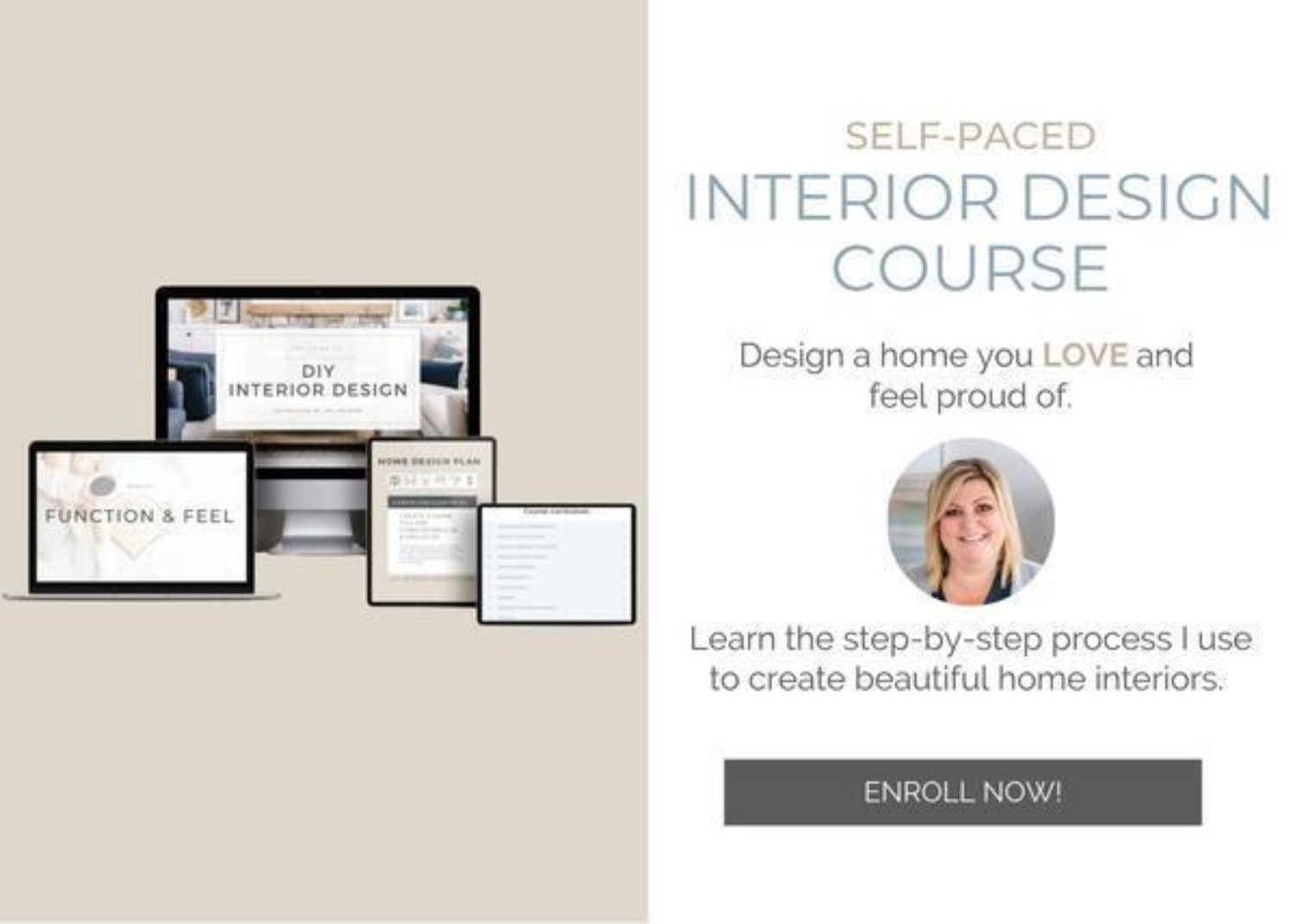 In the meantime if you need interior decorating advice, I invite you to visit our BLOG or enroll in our comprehensive DIY Interior Design Course that takes you step-by-step through our entire design process so that you can create a designer space that you’ll love in your home.