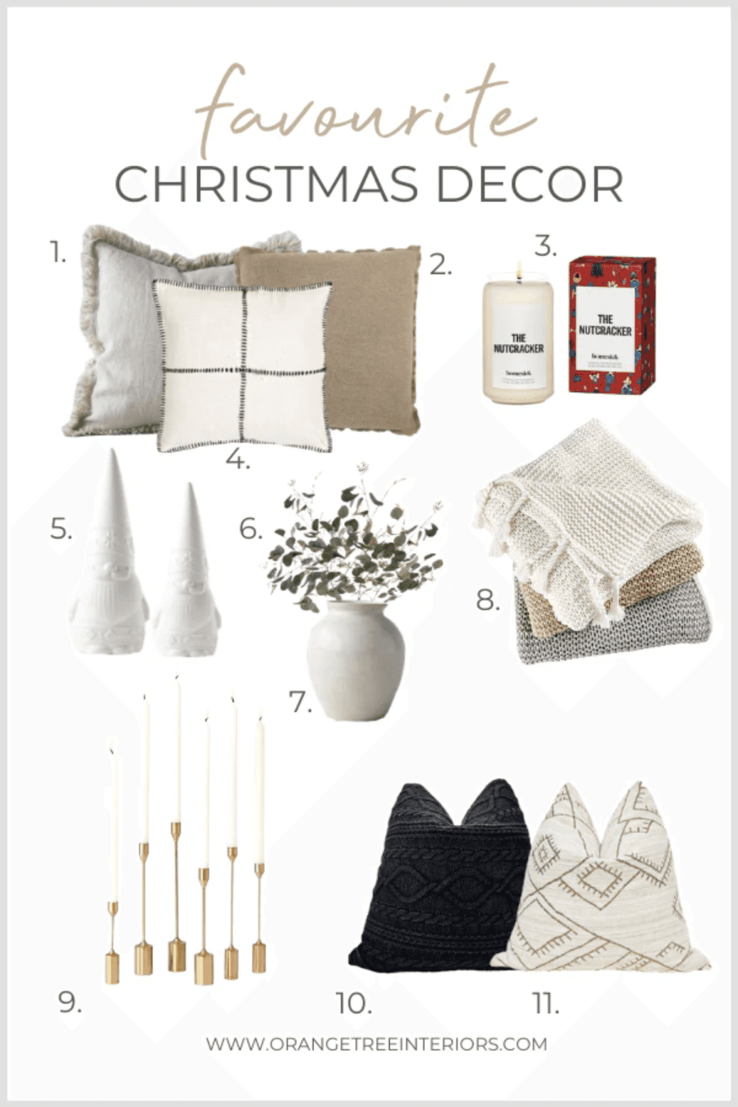We love decorating for the holiday season (obvi :) and we hope that our holiday selections help inspire you when decorating your home for Christmas. We’ve put a few Christmas decorating ideas together below based on each designer’s personal decorating style. Make sure to click the links to shop your favourite items. (Note: these links may award us a small commission at no additional cost to you).