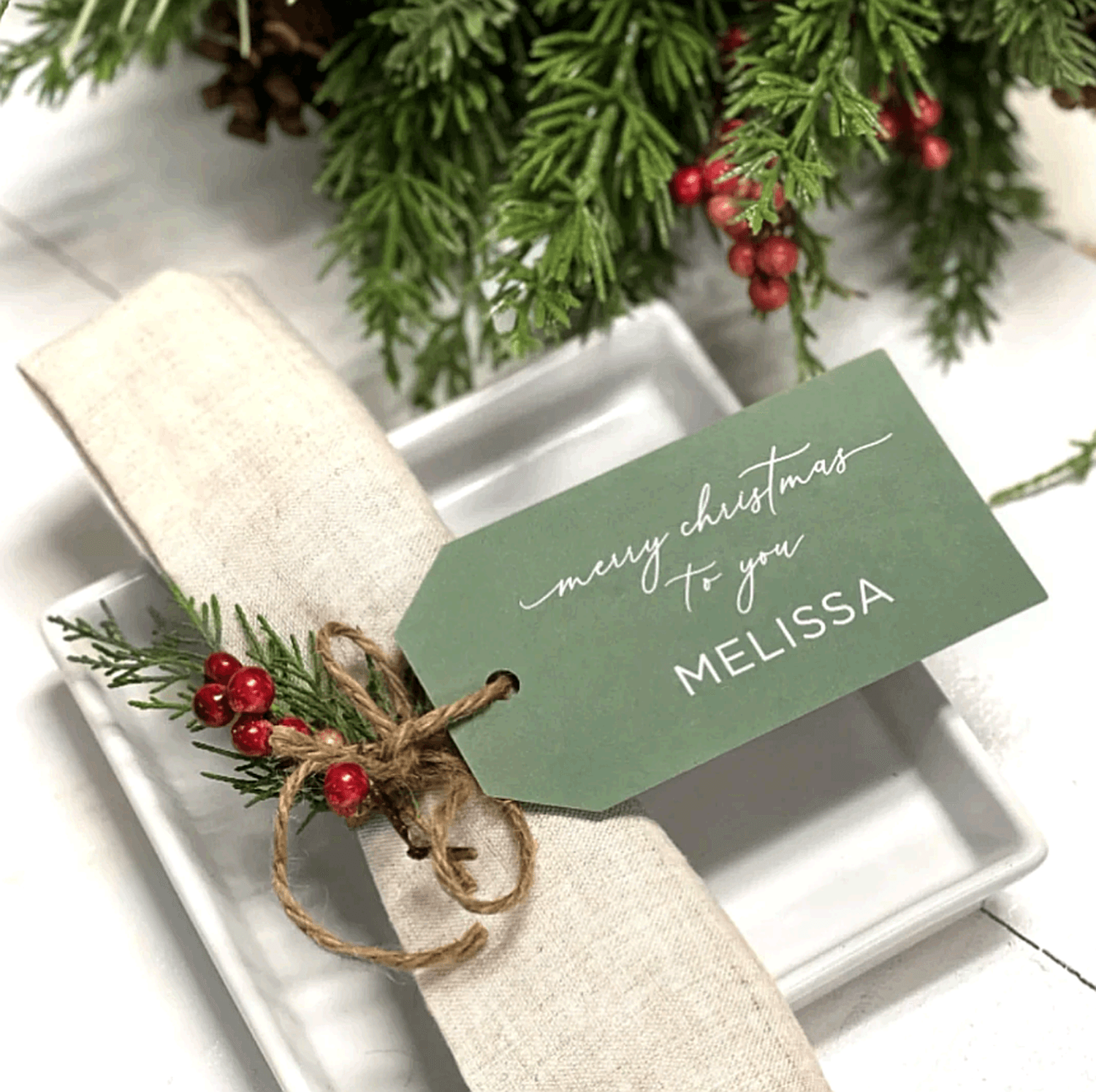 Small details go a long way. Place cards, sprigs of greenery, colored florals, vintage treasures, napkin rings and ribbon add personality while also making your dining table (and guests) feel special.
