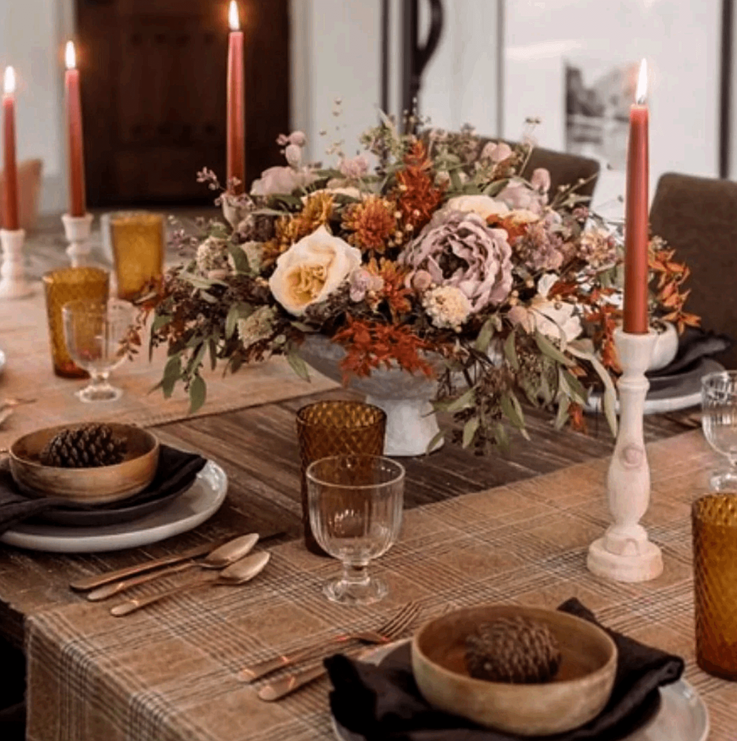 Pro tip: Use unscented candles on your tablescapes to avoid competing with food aromas.