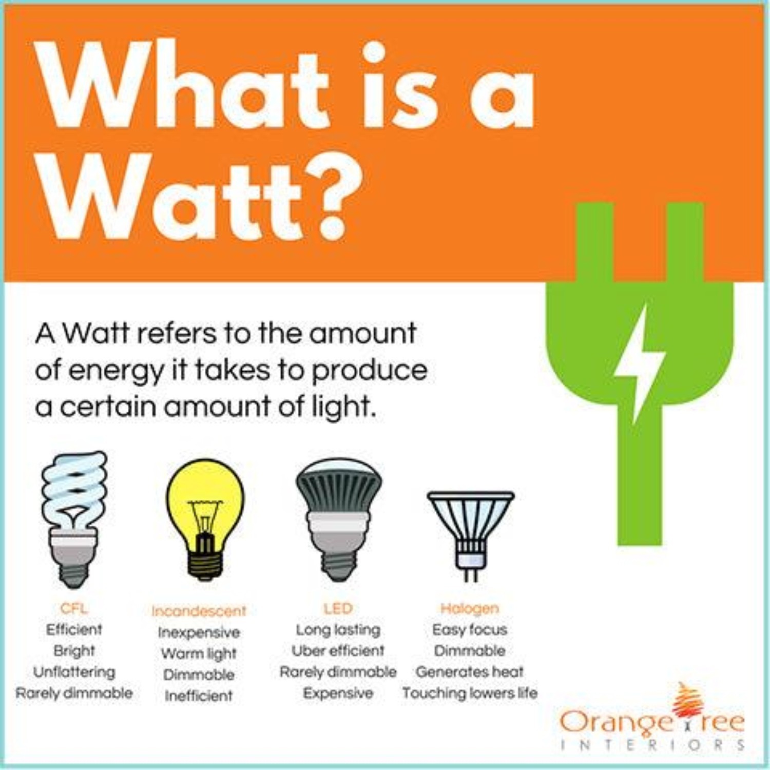 In terms of lighting, a Watt refers to the amount of energy it takes to produce a certain amount of light. Thus, the higher the wattage value, the more energy it takes to light a space.