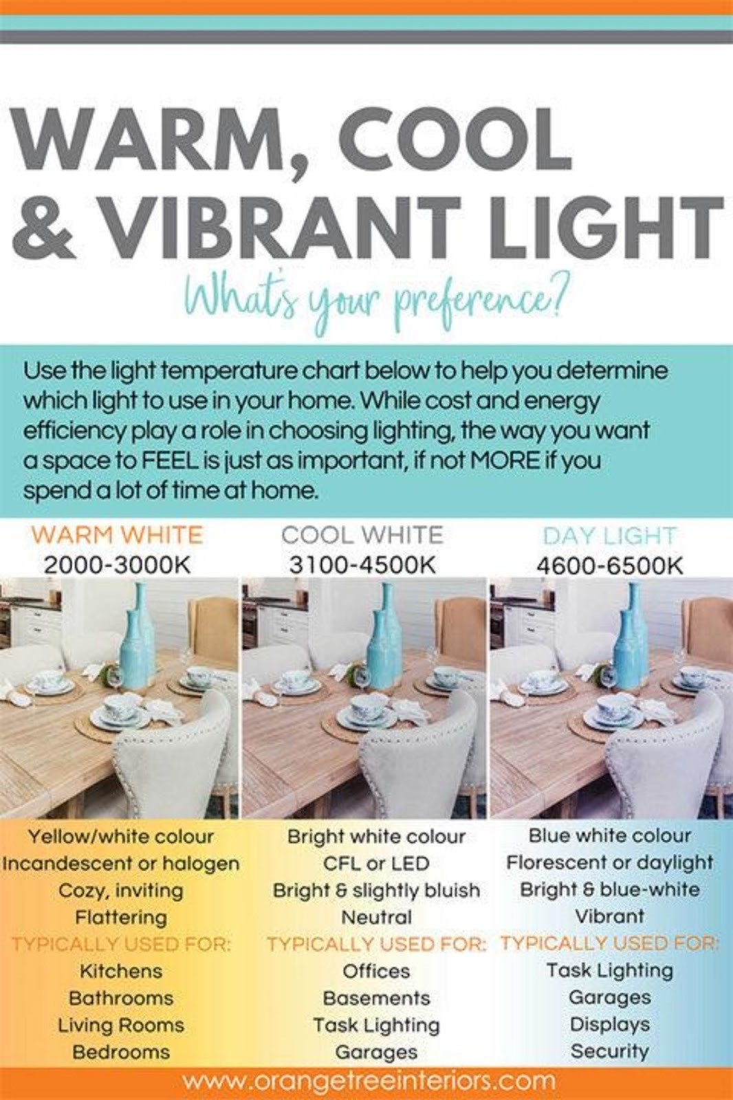 Generally speaking in a residential space, I like to choose lights within the 3000-4000 Kelvin range. Use the chart below to determine which light temperature you'd like best.