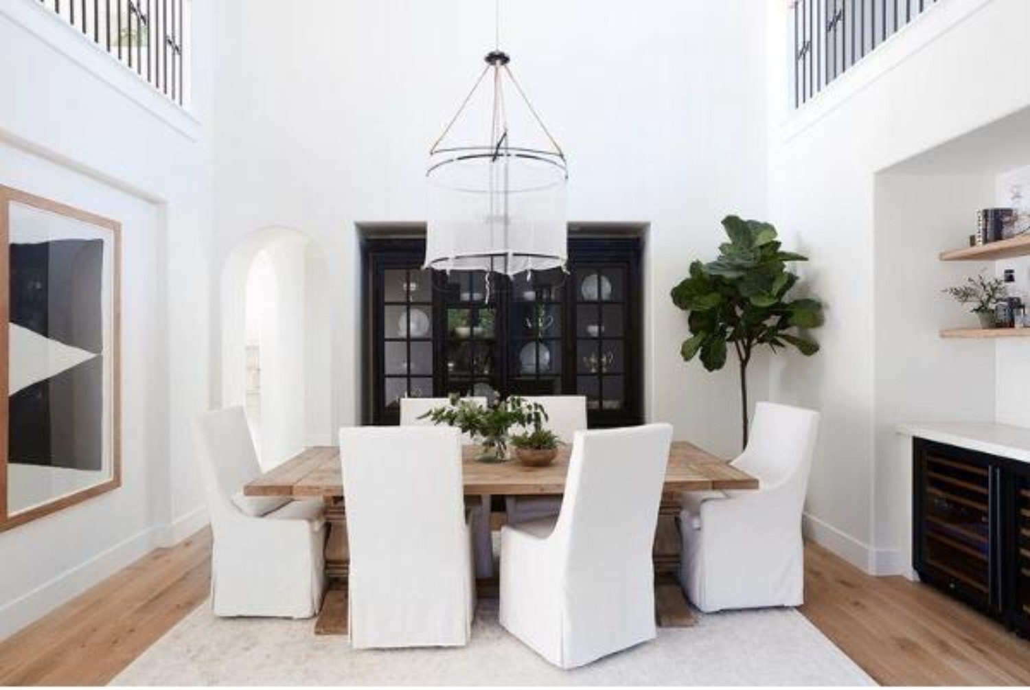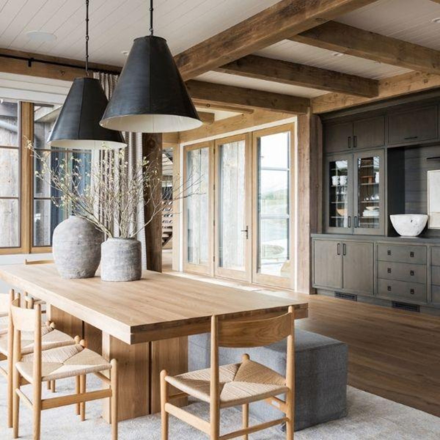 Even when following these guidelines, sometimes a space can start to blend and feel overwhelming when there is a significant amount of wood. Here’s a couple of tips to help downplay a space that incorporates more wood than you're used to.