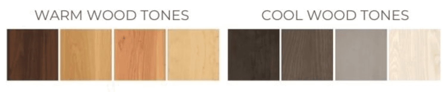Just like you were taught way back in art class, there are different undertones that you can work with: warm, cool, or neutral. A rule of thumb when working with undertones is to stay within the warm tones OR stay within the cool tones when mixing different woods. It's best not to mix and match.