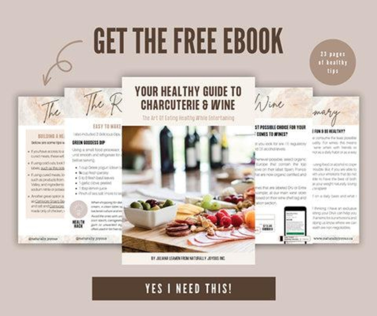 Today Juliana is sharing her favorite (secretly healthy) entertaining foods to enjoy with healthier versions of my favorite drink for entertaining – wine! in an eBook she created just for us to enjoy: Your Healthy Guide to Charcuterie & Wine.