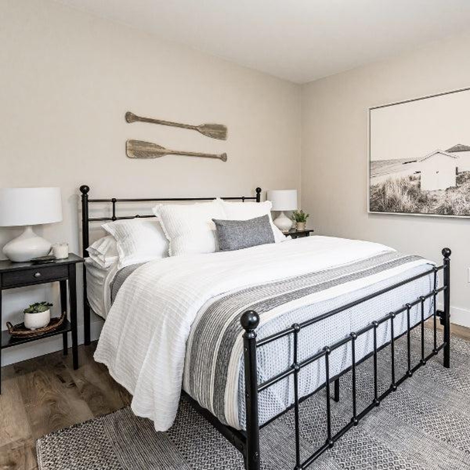 This is my go-to for a relaxed, modern farmhouse-meets-coastal look. White Duck is creamy without being yellow and gives off that "natural linen" vibe that works so well with warm and cool colors. White Duck is as close to a no-fail color as you can get. It truly works with almost any color.