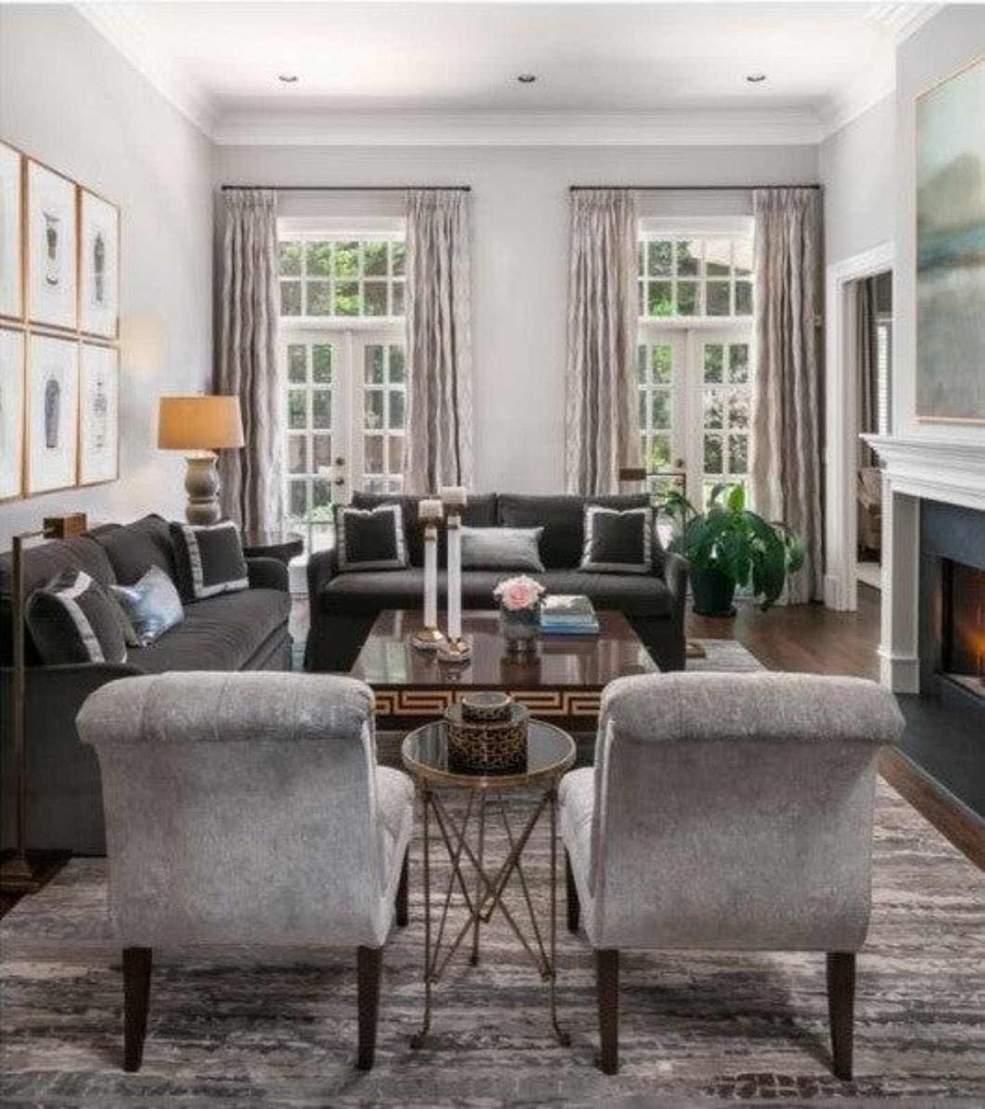 The space was long, narrow with floor to ceiling windows on each end and a fireplace placed off-center in the space. These structural elements helped us determine how to layout the zones.