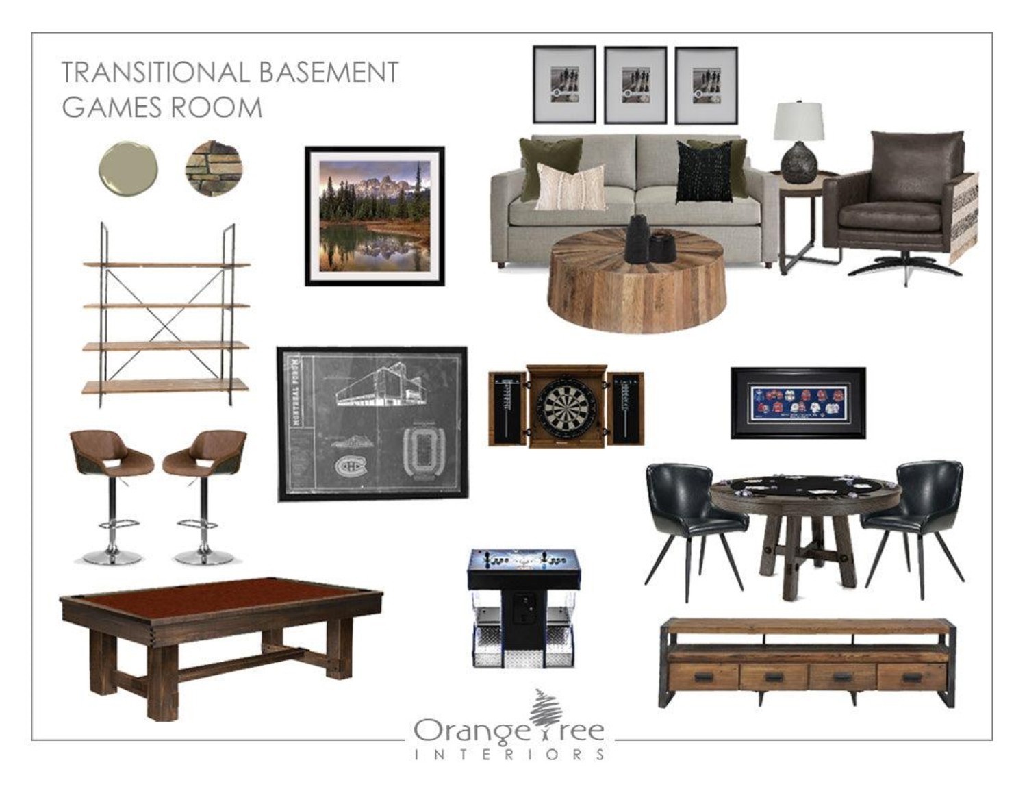 This family-friendly basement concept design was created for a family with three young kids. The homeowners wanted a place the whole family could enjoy together that was practical for the kids but was adult enough for entertaining on game nights and family gatherings. Performance fabrics, rustic furnishings, toy storage and swivel chairs make this a functional space for all to enjoy.