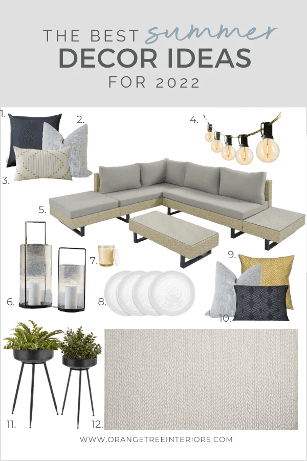 To be honest, I’m pretty frugal by nature (and my hubby is even more so), so I like to keep summer decorating pretty simple. In my home you might see more plants and flowers or summer coloured/themed pillows, but I keep my personal summer decor fairly modest. I typically transition to creating a beautiful outdoor space perfect for entertaining and soaking up the sunshine! With that said, here are some of the best Decor Ideas for Summer 2022 + Some of Our Favorite Summer Decor for 2022.