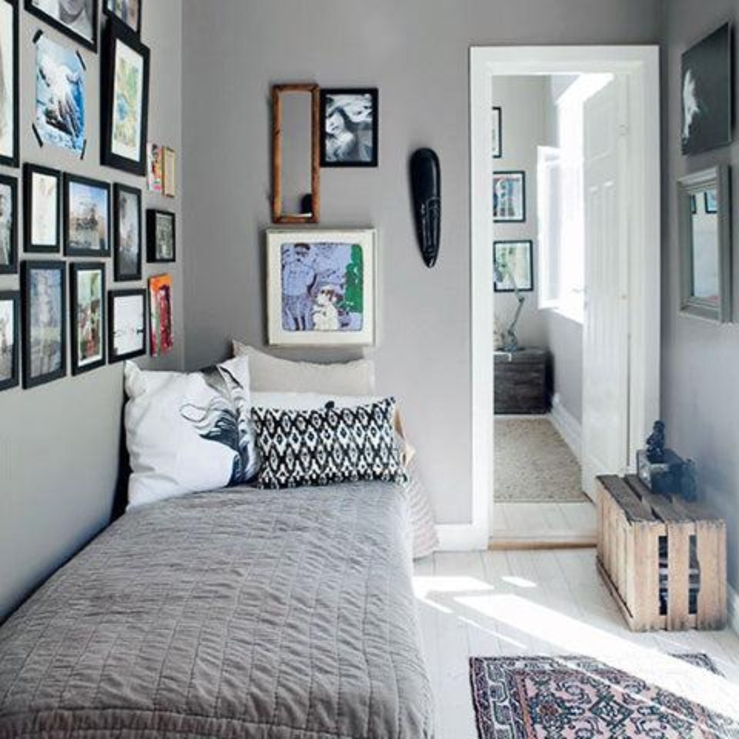 As for single and twin beds, usually these beds are used in small rooms and often they are placed up against walls. Therefore, a 2’ x 3’ or 3’ x 5’ area rug can be used beside the bed, rather than under it.