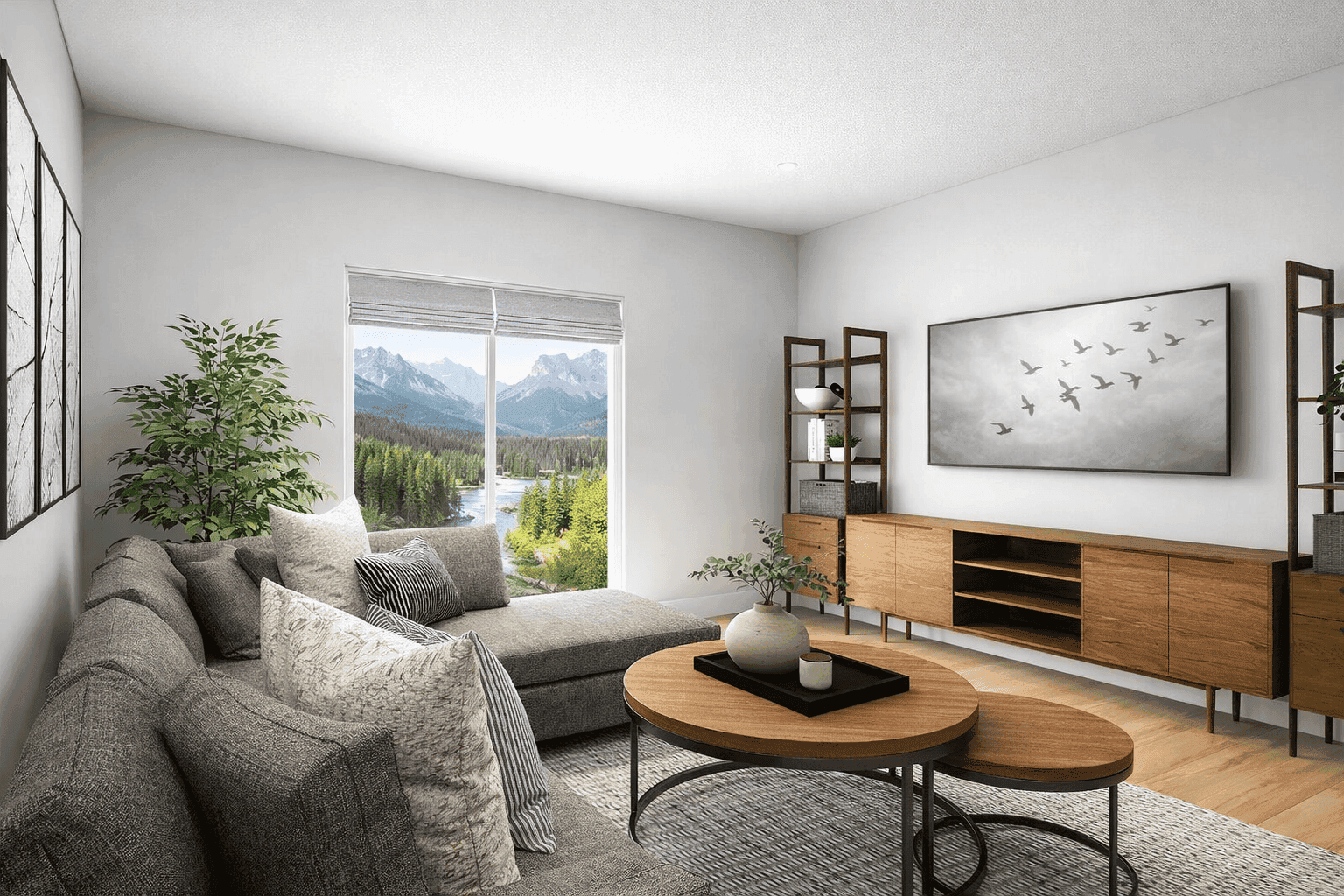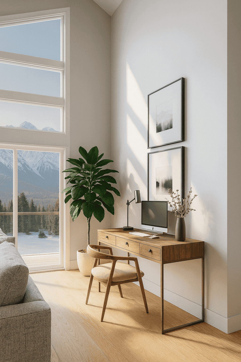 Designed as a calm retreat for a busy entrepreneur/mom who loves the outdoors, this light and airy mountain home blends minimalist lines with warm textures. The uncluttered design focuses on creating breathing space to ease the pace of busy days, while natural materials and grounded details bring warmth and balance. It’s a home that feels open, inviting and effortlessly cool.