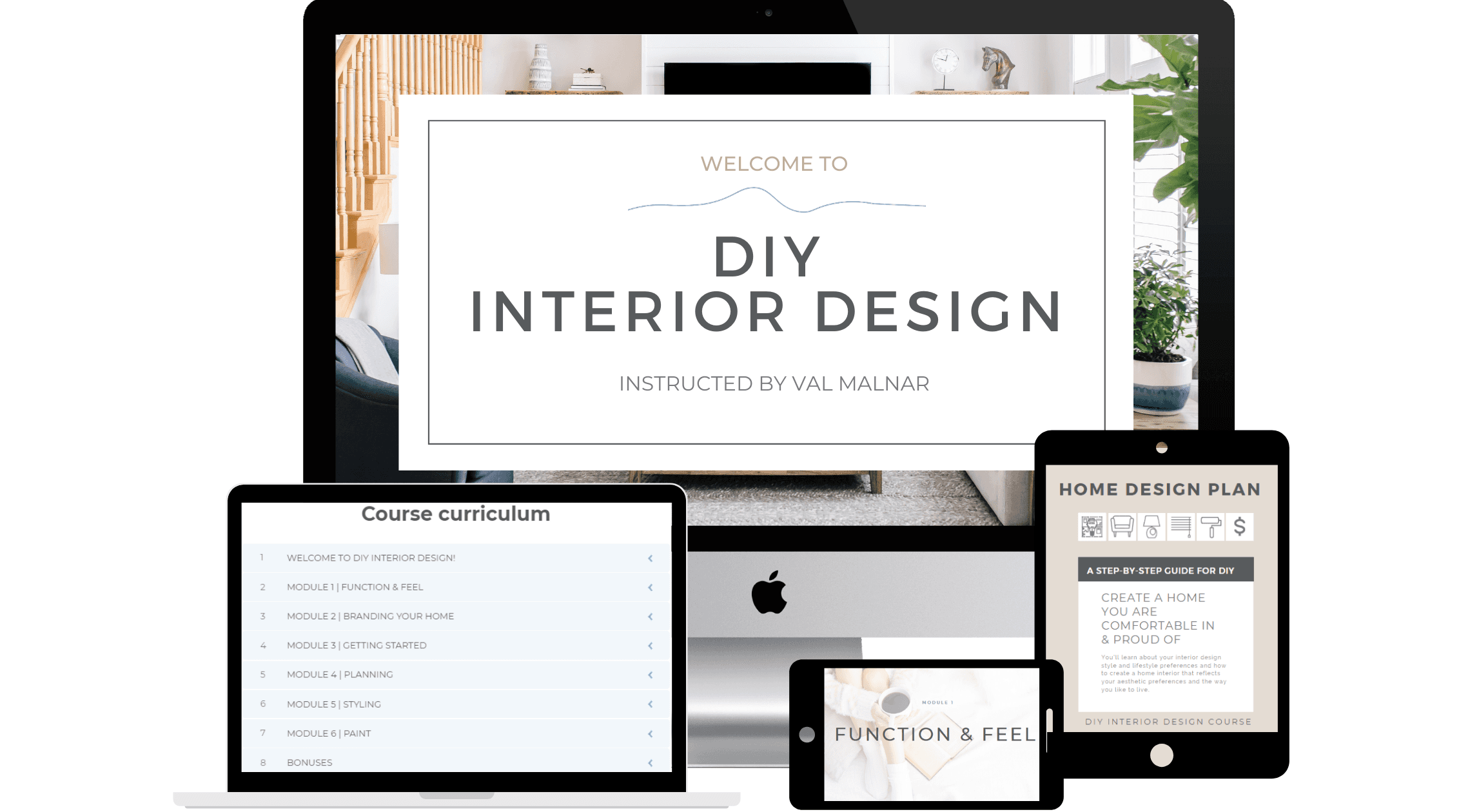 My DIY Interior Design Course gives you the same step-by-step process I use with clients so that you can stop wasting weekends bouncing between online searches, Pinterest, blogs and endless store options and start creating a beautiful, comfortable home you love.