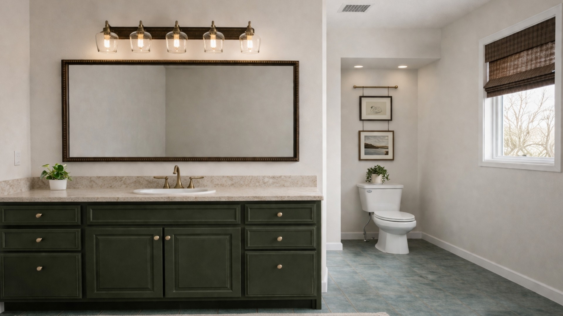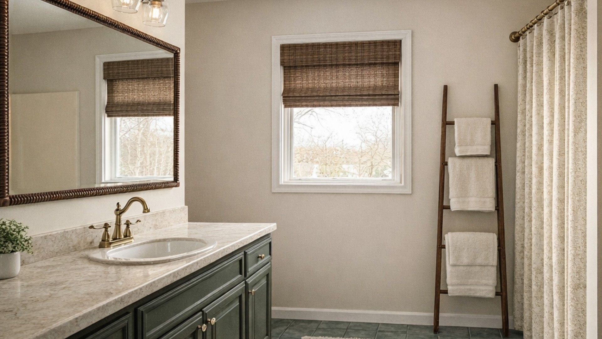 In this post, I share how we transformed a 1990s bathroom with blue-green tile and a honey oak vanity into a warm, vintage-modern farmhouse retreat. From painting the vanity Benjamin Moore Ashwood Moss to choosing a Taj Mahal-look laminate countertop and soft neutral walls like Ballet White, these budget-friendly ideas help create a cohesive, elevated space. If you’re looking for affordable bathroom refresh ideas that feel calm, intentional, and beautifully pulled together, this step-by-step guide will show you exactly how to get there.